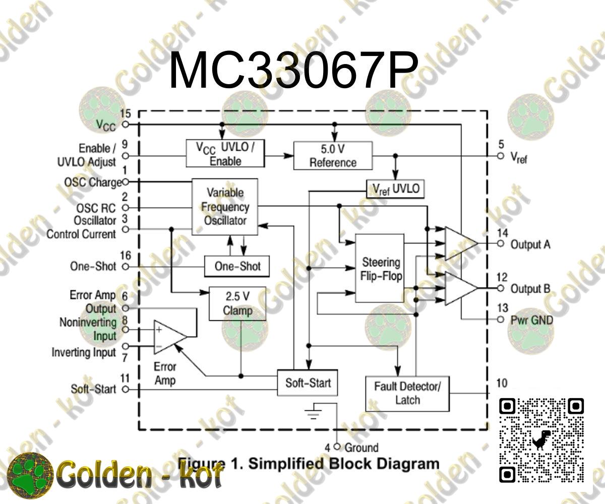 MC33067P применяется в автономных источниках питания, преобразователях DC-DC и т.д..