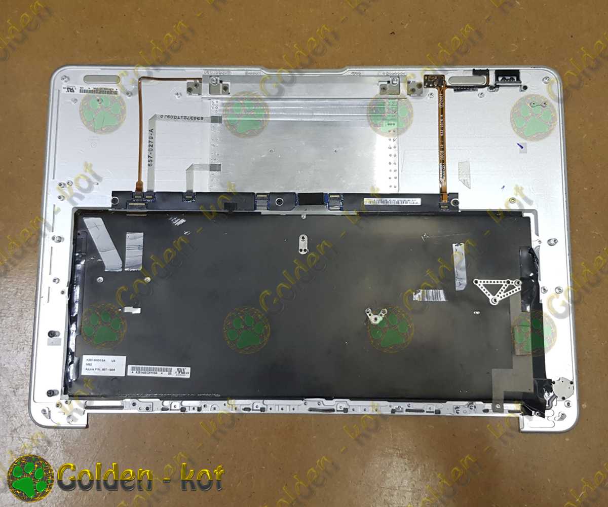 Позиция включает в себя топкейс (небольшая деформация в правом углу), тачпад со шлейфами, клавиатуру, ИК-датчик на шлейфе, кнопку включения.